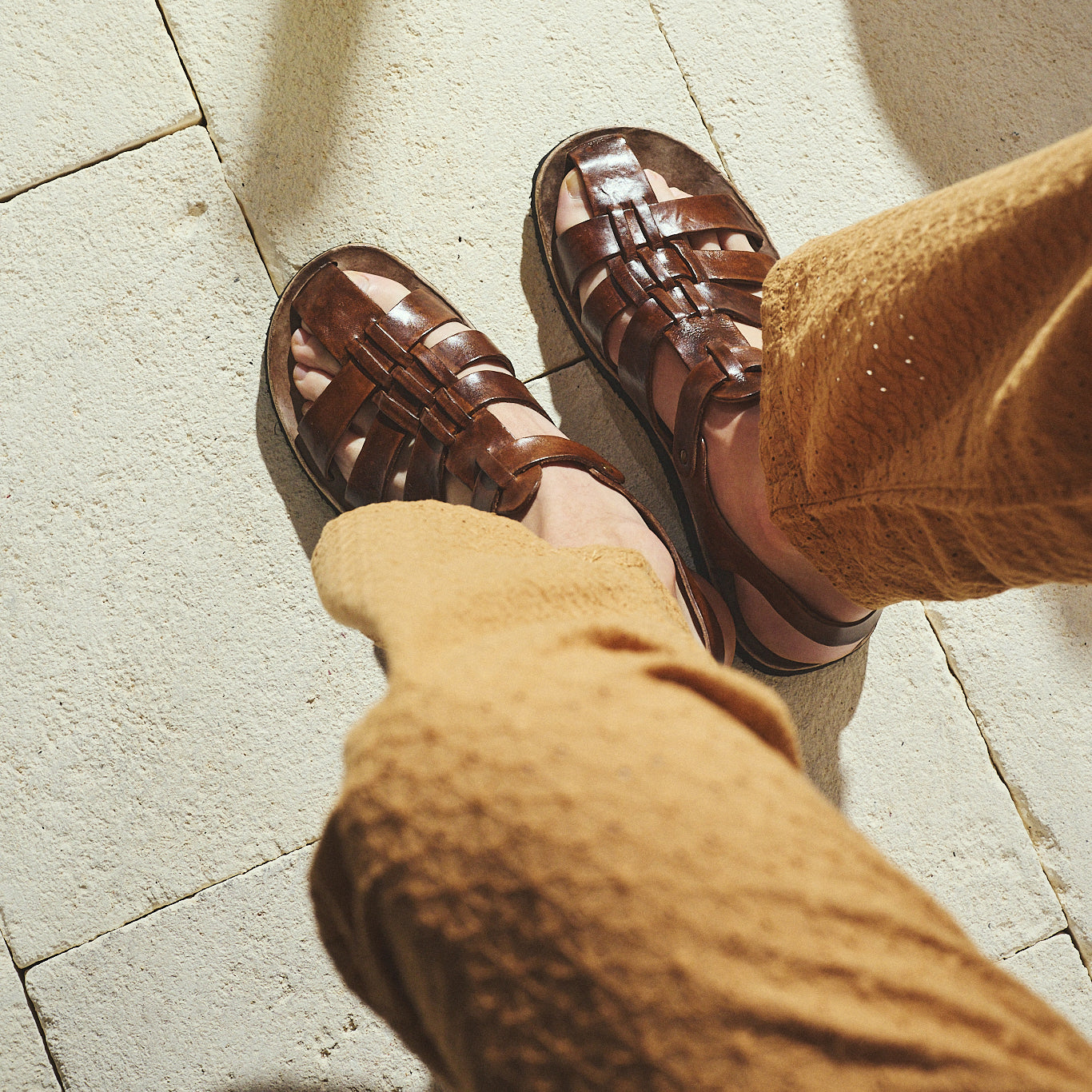 Realizzati con tinture e cere applicate a mano, questi sandali esaltano la bellezza naturale della pelle non rifinita, dove ogni imperfezione diventa un segno distintivo di autenticità.
