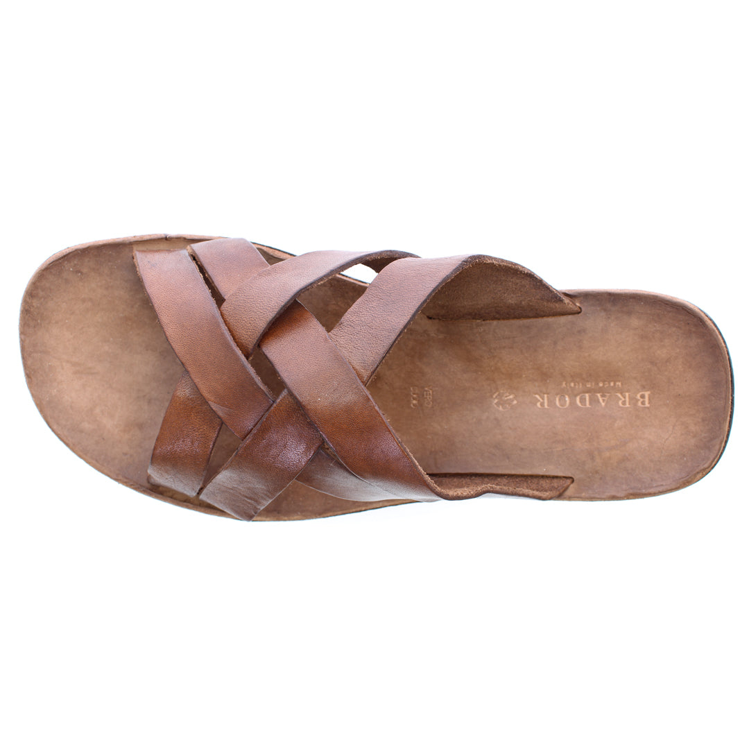 L'aspetto vintage è il risultato della nostra speciale lavorazione T/CAPO Brador che conferisce unicità al sandalo. L’utilizzo di tinture e cere a mano rende ogni calzatura unica e irripetibile così che ogni cliente possa indossare una piccola opera d'arte ai piedi.