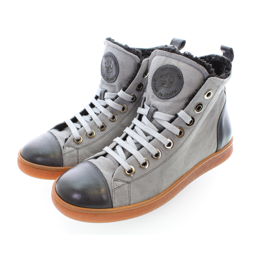 La sneaker JULIET ANTRACITE lavata con lavorazione T/CAPO Brador nasce dall’ unione di pelle e canvas che ne conferisce un aspetto moderno e ricercato.