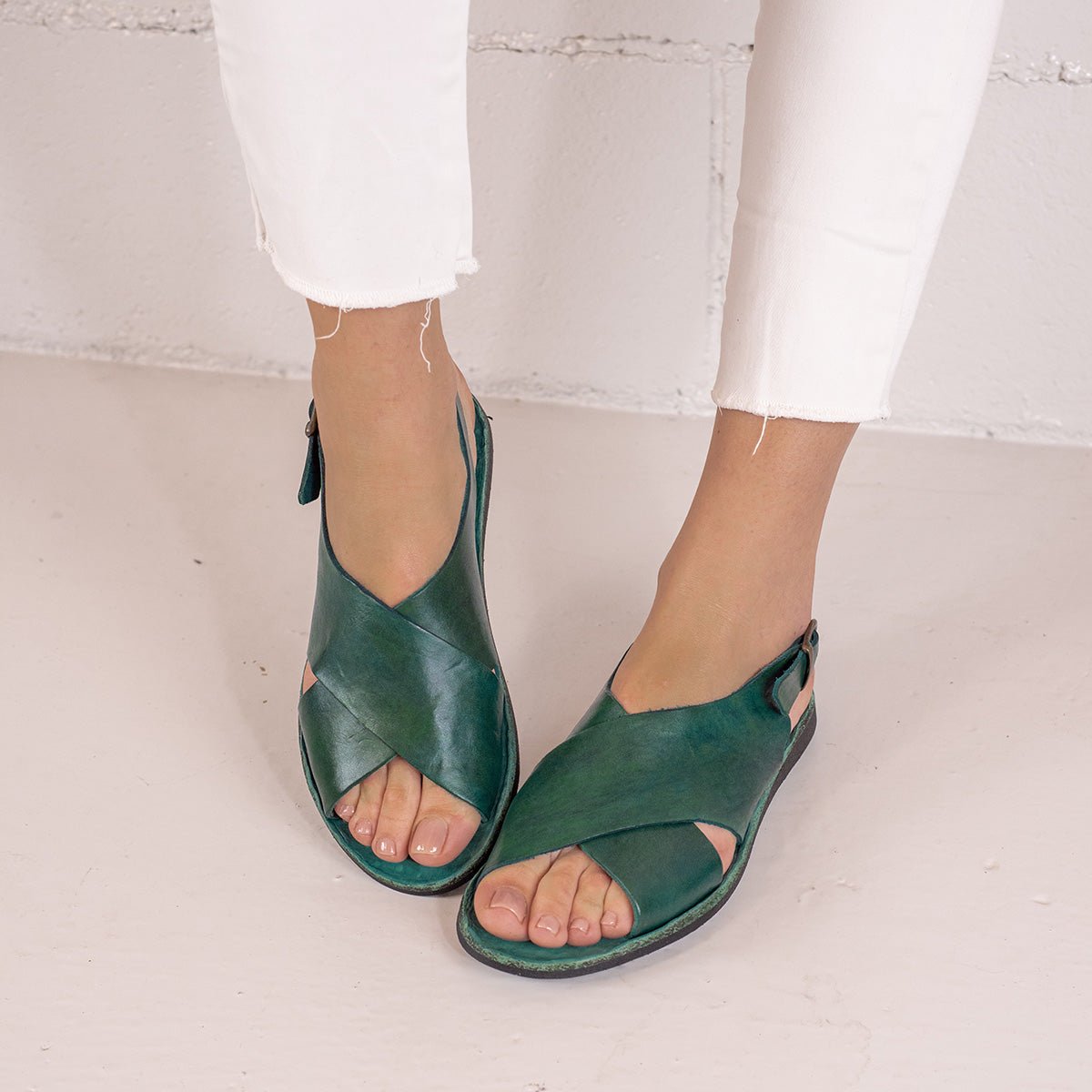 RIO PETROLIO ist eine pflanzlich gegerbte Ledersandale mit einem Konzept, das zu jedem Outfit passt.