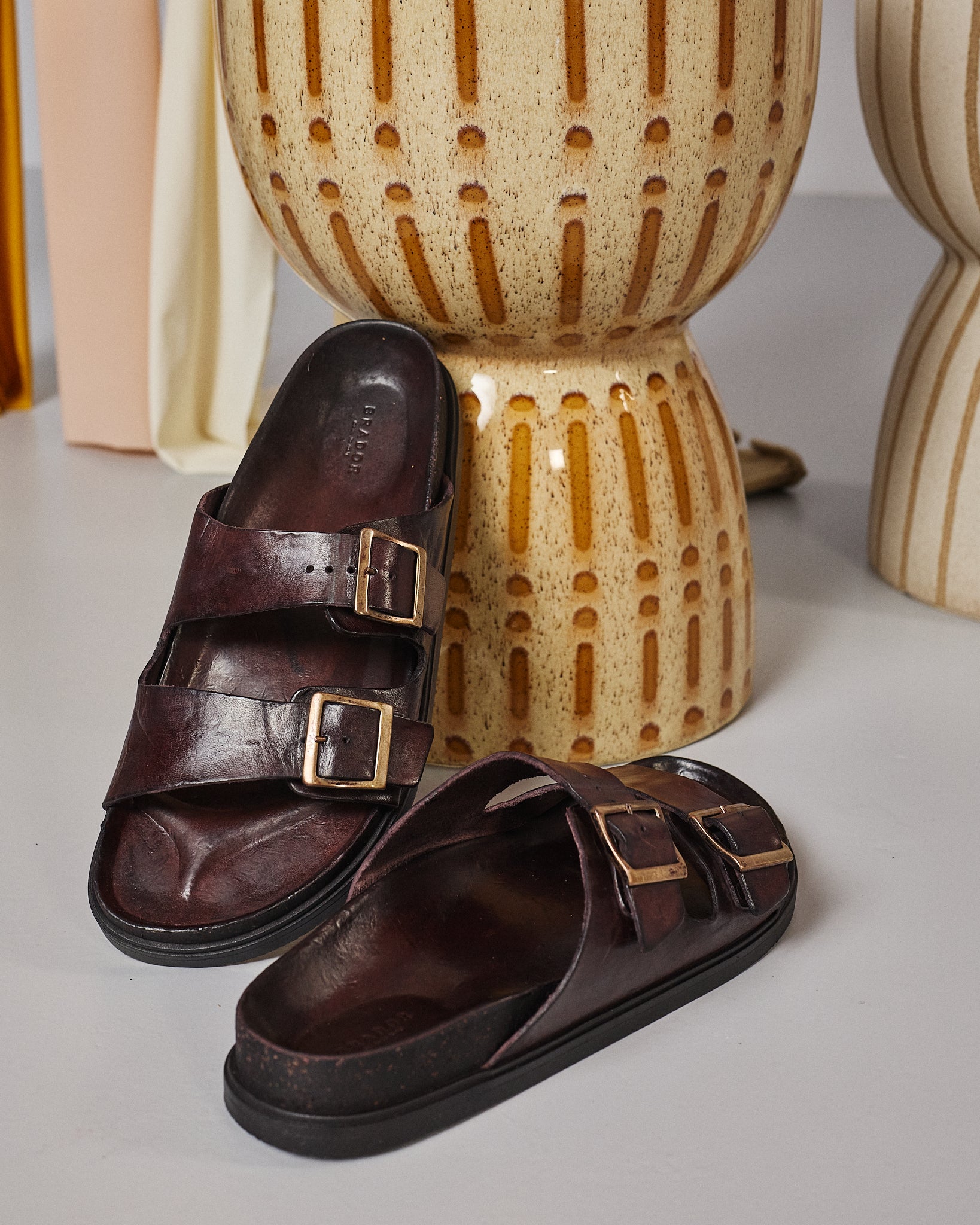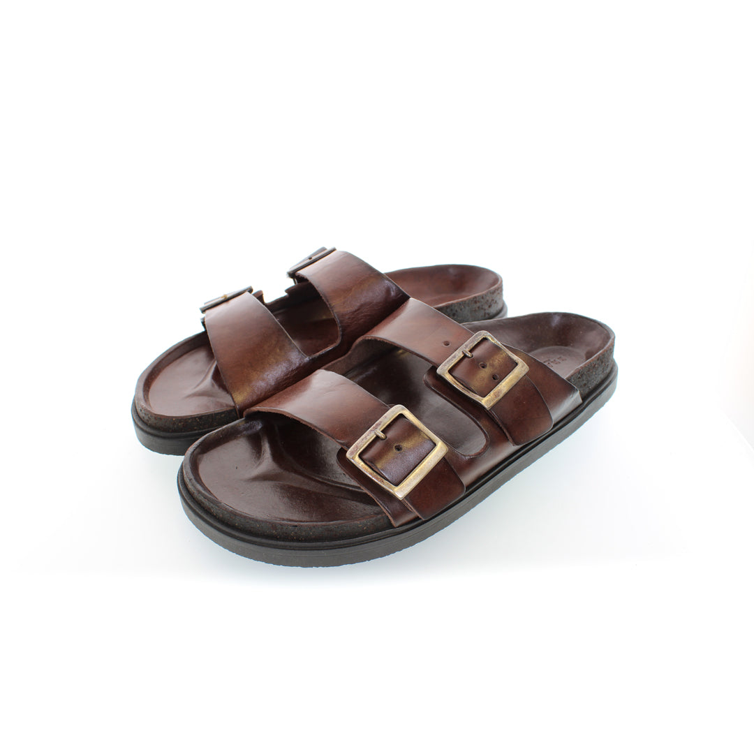 The vintage look is the result of our special T/CAPO Brador processing that gives uniqueness to the sandal. The use of hand dyes and waxes makes each shoe unique and unrepeatable so that every customer can wear a small work of art on their feet.