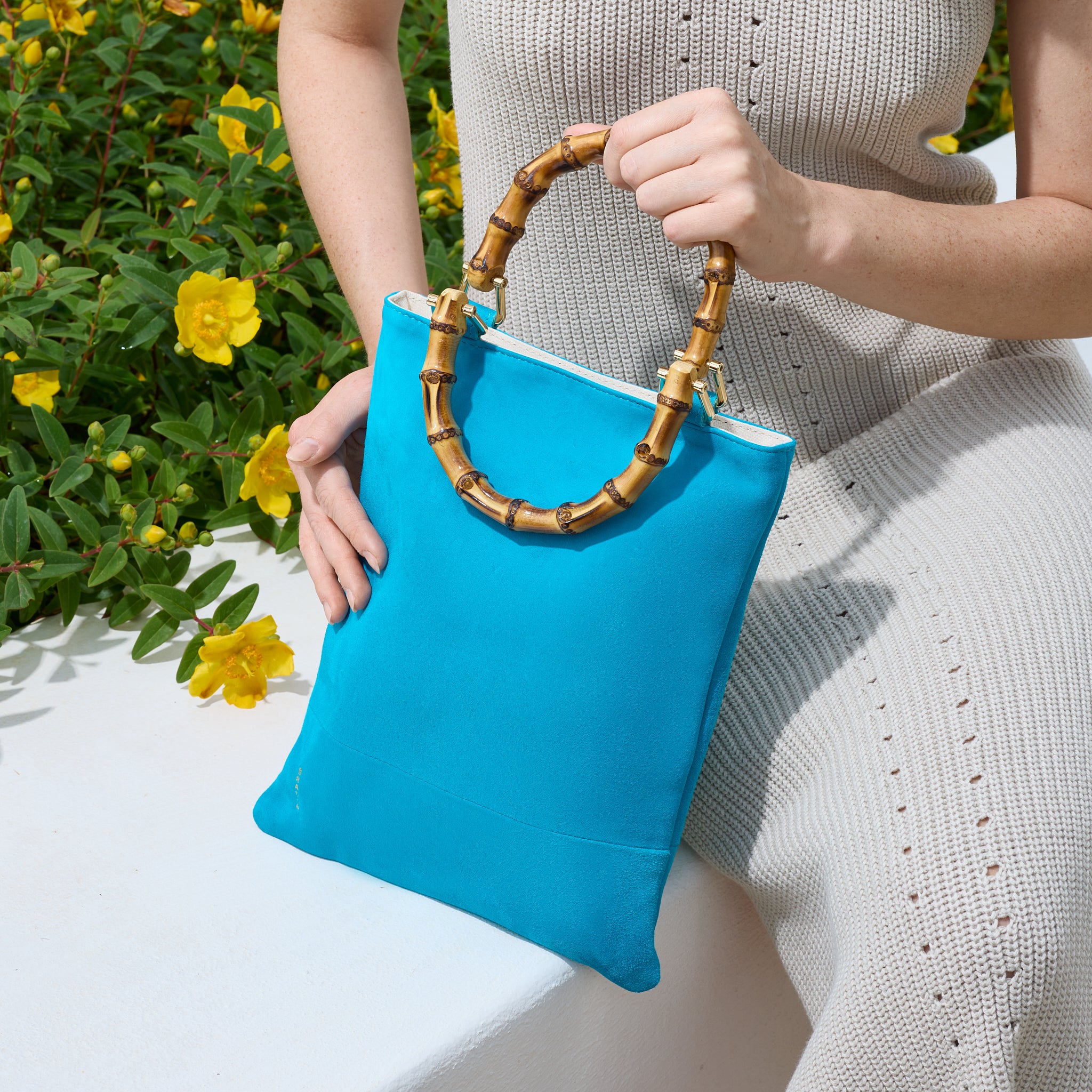 - Borsa a mano, manico effetto bamboo