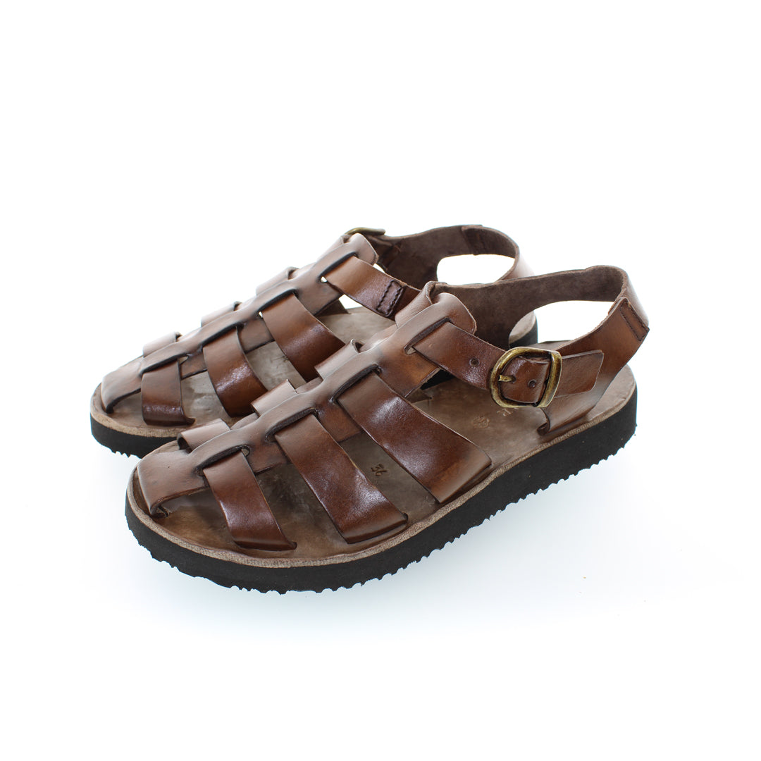 Sandalia de piel curtida al vegetal, con un diseño versátil que se adapta fácilmente a cualquier conjunto. Su estilo vintage nace de nuestra especial técnica de fabricación T/CAPO Brador, que hace que cada par sea único.