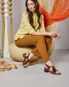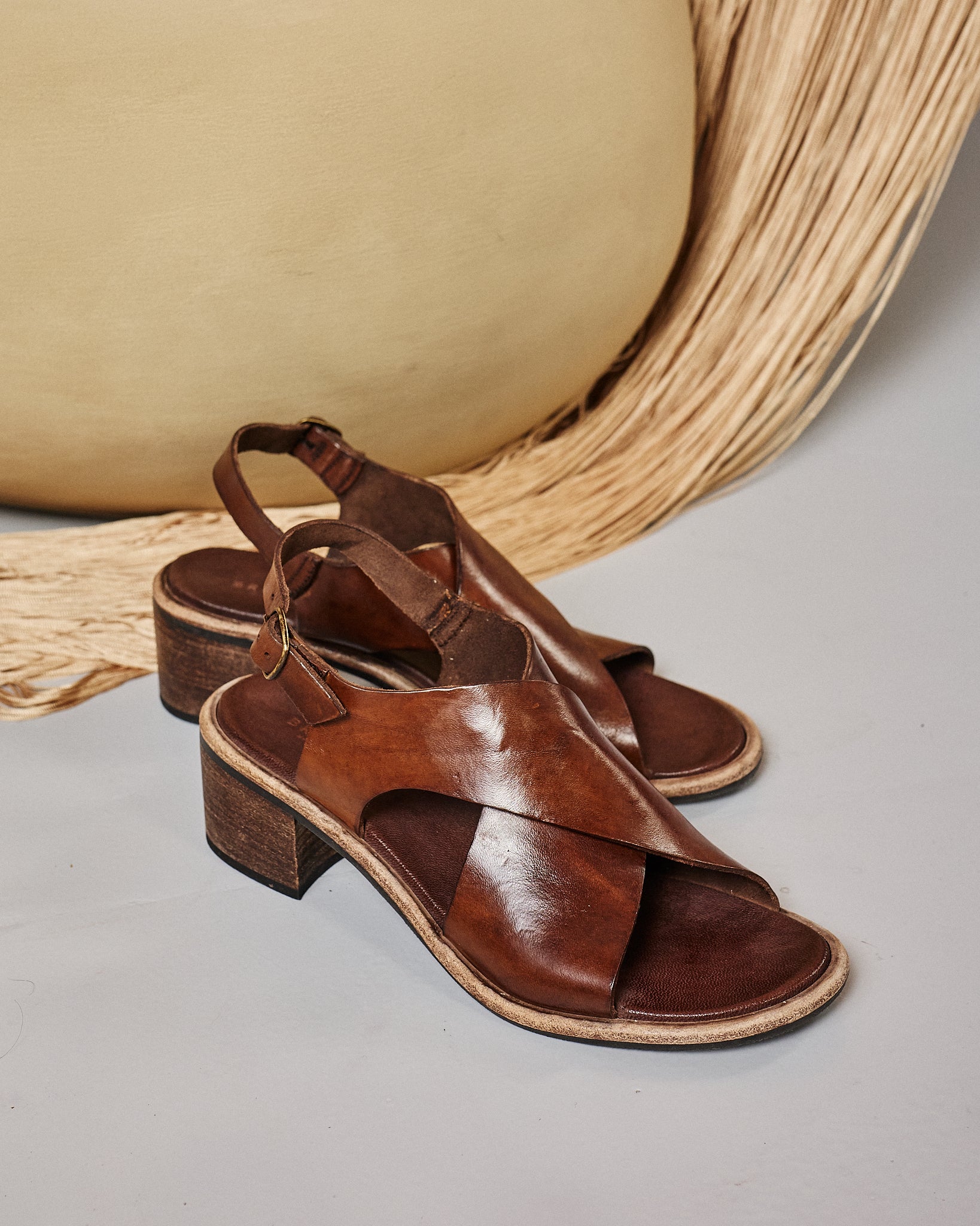 Sandalia de tacón de curtido vegetal con un concepto adecuado para cualquier atuendo.