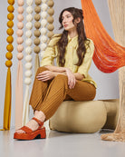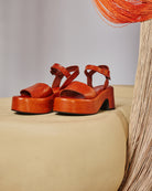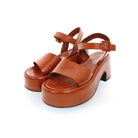 Sandalo con tacco con pellame in concia vegetale dal concept adatto a qualsiasi tipo di outfit.