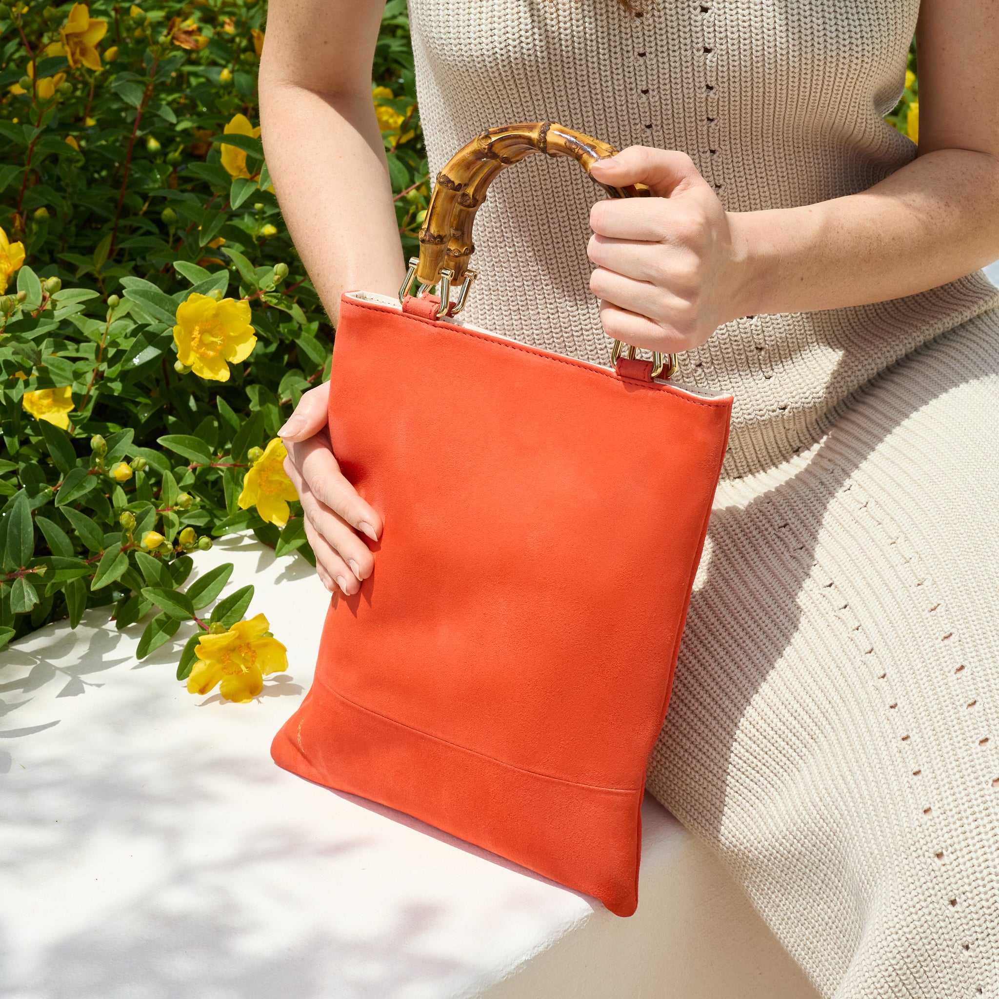 - Borsa a mano, manico effetto bamboo